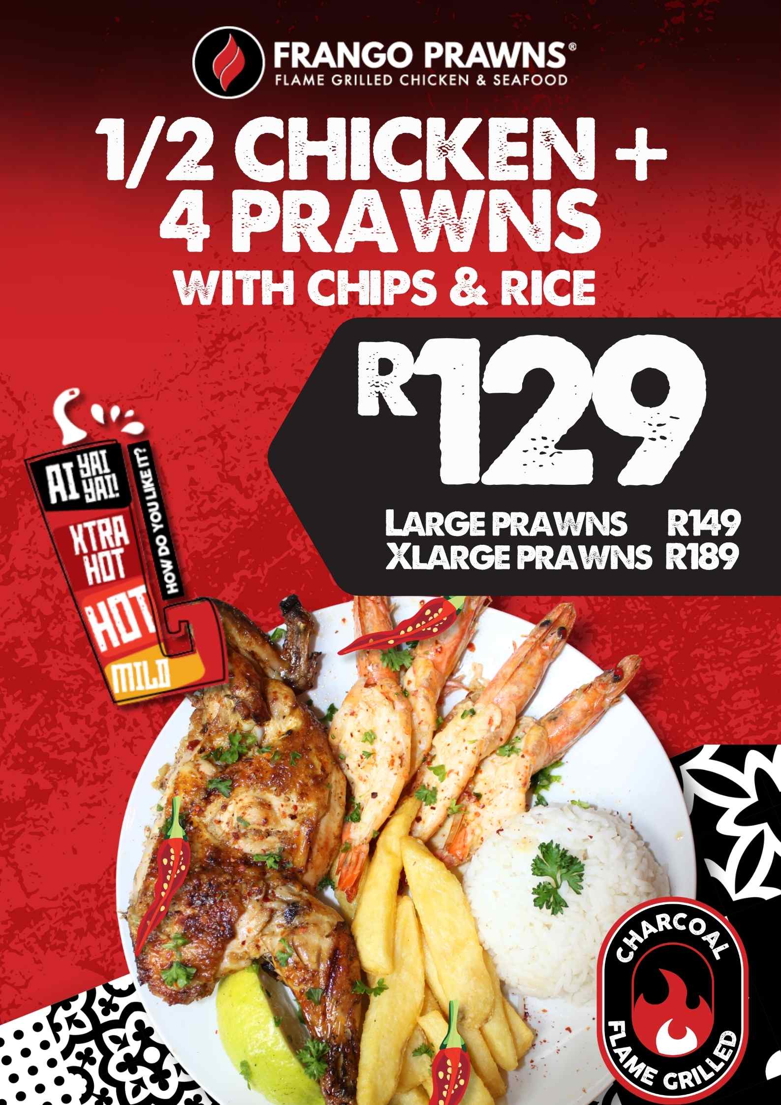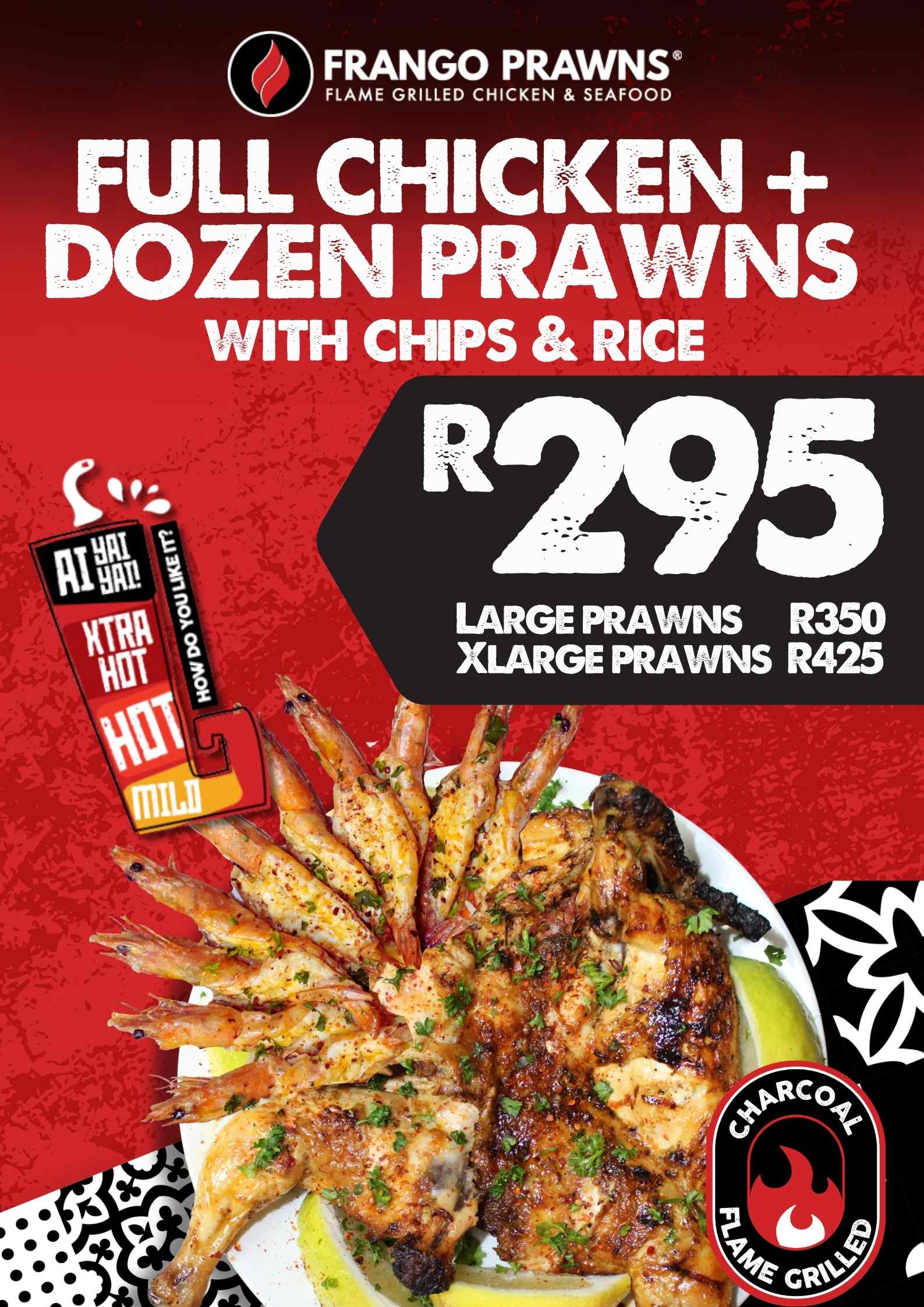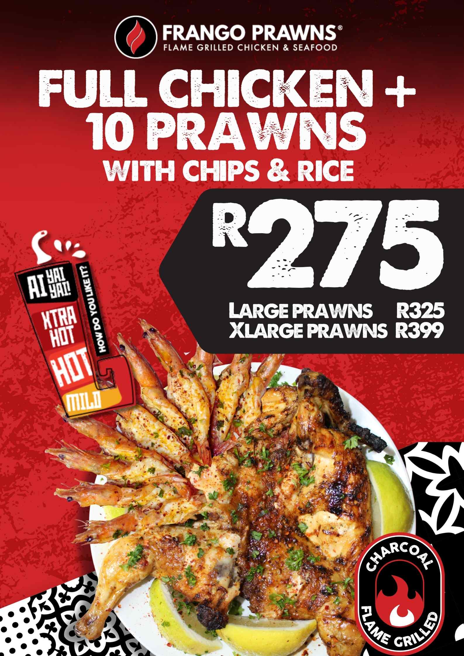 Inspired by Portuguese–Mozambique cooking traditions and carefully crafted to suit South African flavour preferences, FRANGO & PRAWNS® delivers bold, unmistakable flavour cooked over an open flame.