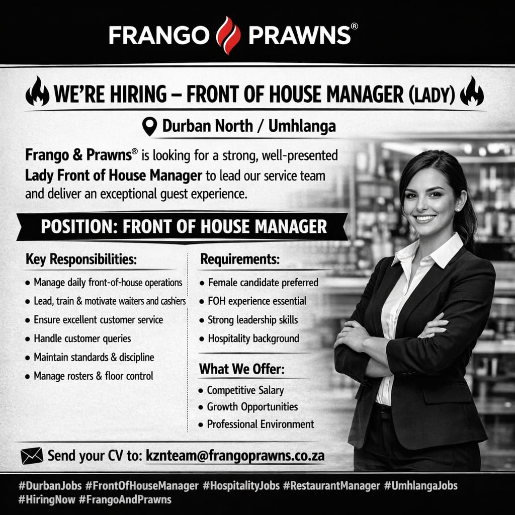 Join the Frango Prawns family and grow your career in a fast-paced, flavour-filled environment.